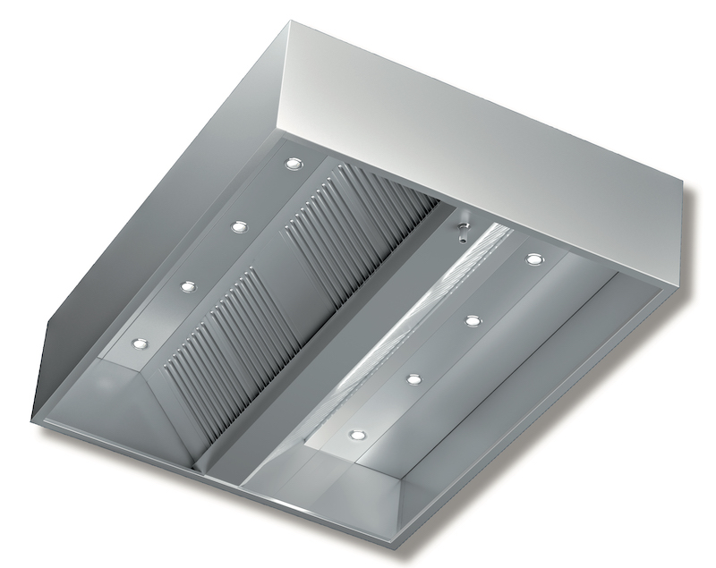 Аспираторен чадър островен кубичен с мотор и хал. осветление, ширина 2800 мм.