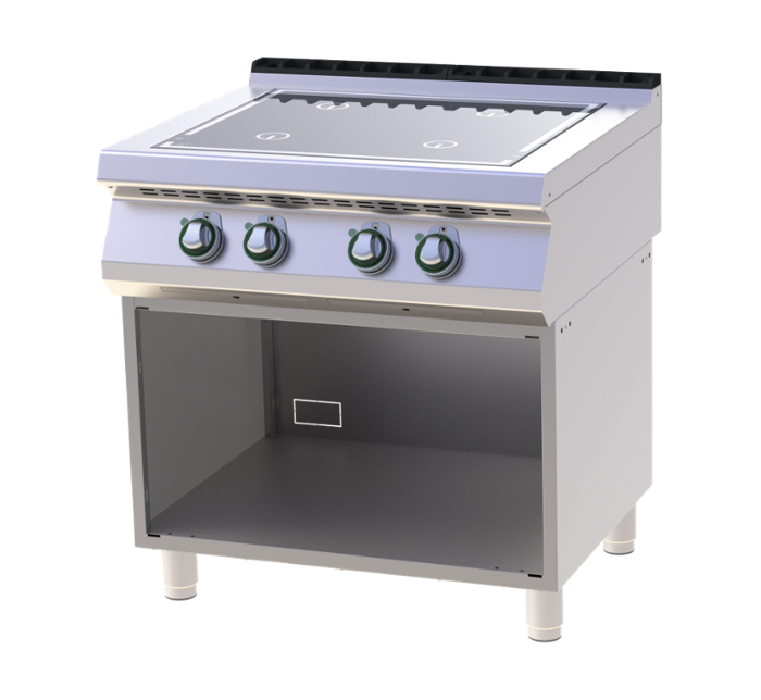Уредите могат да бъдат настолни или върху основа. Серията предлага избор от индукционни, кръгли, квадратни и обединени плочи. Всяка плоча е с вътрешна термозащита, а мощността се регулира от шест степенен ключ.
