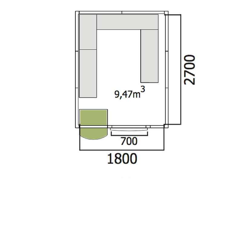 - вътрешен размер на стаята 1800х2700 мм