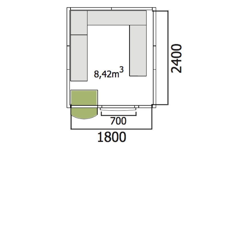 - вътрешен размер на стаята 1800х2400 мм