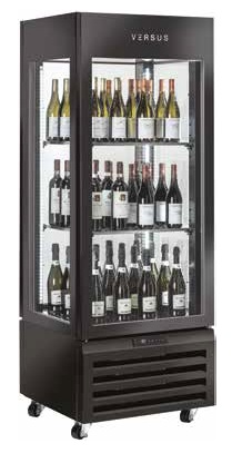 Хладилна витрина за вино, четиристранна с 1 стъклена врата, 440 л, черна, клас А