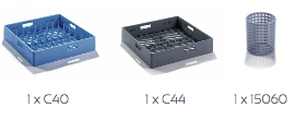 - включени базова кошница, кошница за чаши и кошница за прибори