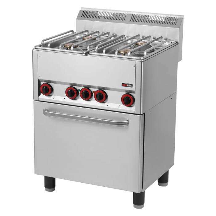 Печка с електрическа фурна GN 1/1 и три мощни газови горелки с пилотен пламък