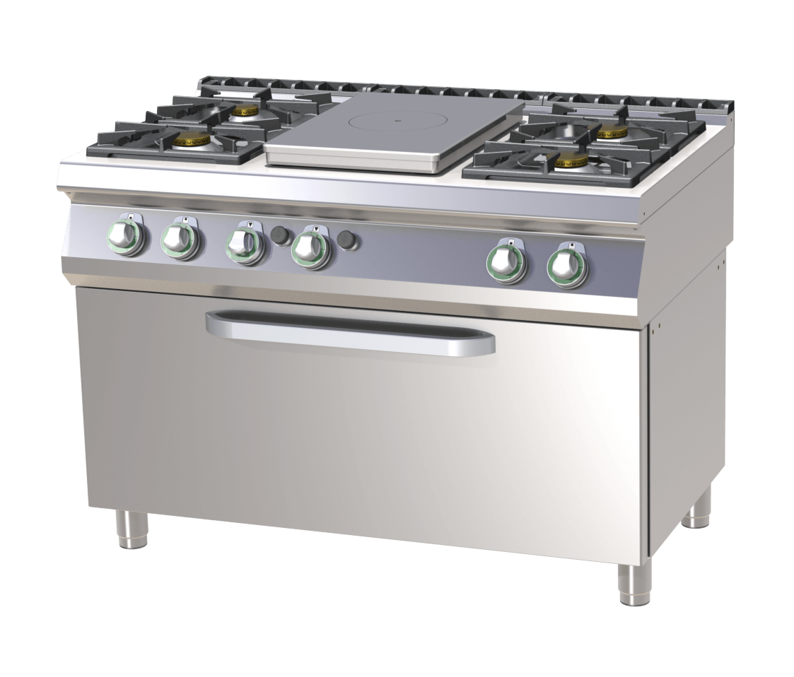 Печка с газова фурна GN 3/1, четири газови горелки и плоча