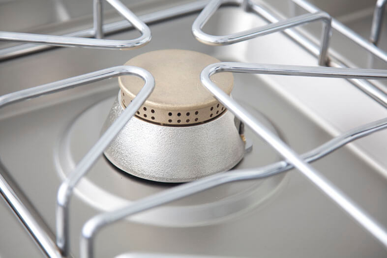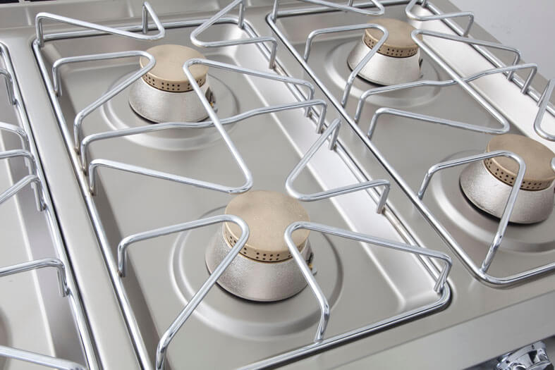 Газовите котлони са снабдени с чугунени Flex-горелки с мощност 7 kW и разглобяем пилотен пламък, което осигурява безопасно готвене и по-лесна поддръжка. Позицията на горелките позволява използването на съдове с диаметър до 40 см, а решетката на котлона е подходяща за почистване в съдомиялна машина.