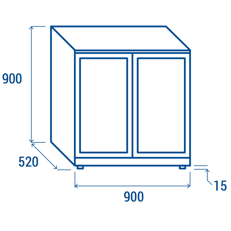 Подбарова хладилна витрина с 2 плъзгащи стъклени врати, H=900 мм, клас D