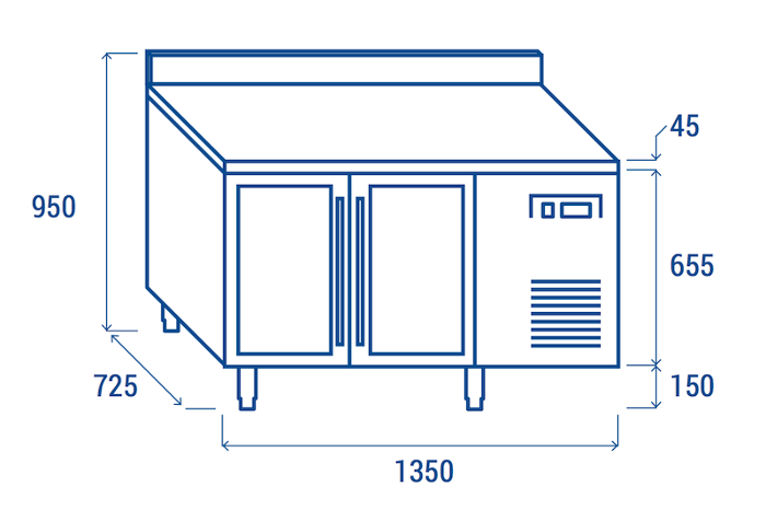 Среднотемпературна хладилна маса с две стъклени врати и борд, GN 1/1 съвместима