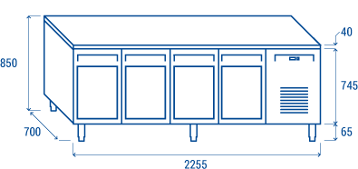 Среднотемпературна хладилна маса с четири стъклени врати, без агрегат, GN 1/1 съвместима