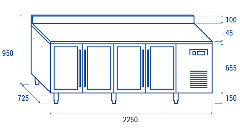 Среднотемпературна хладилна маса с четири стъклени врати и борд, GN 1/1 съвместима