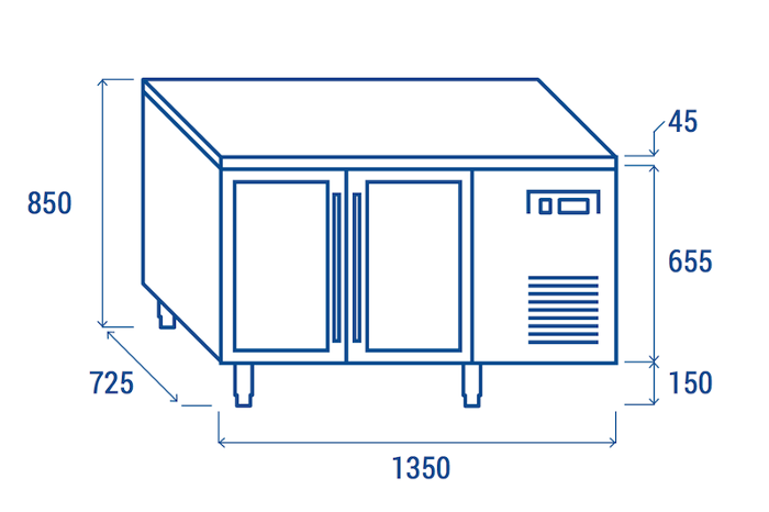 Среднотемпературна хладилна маса с две стъклени врати, GN 1/1 съвместима
